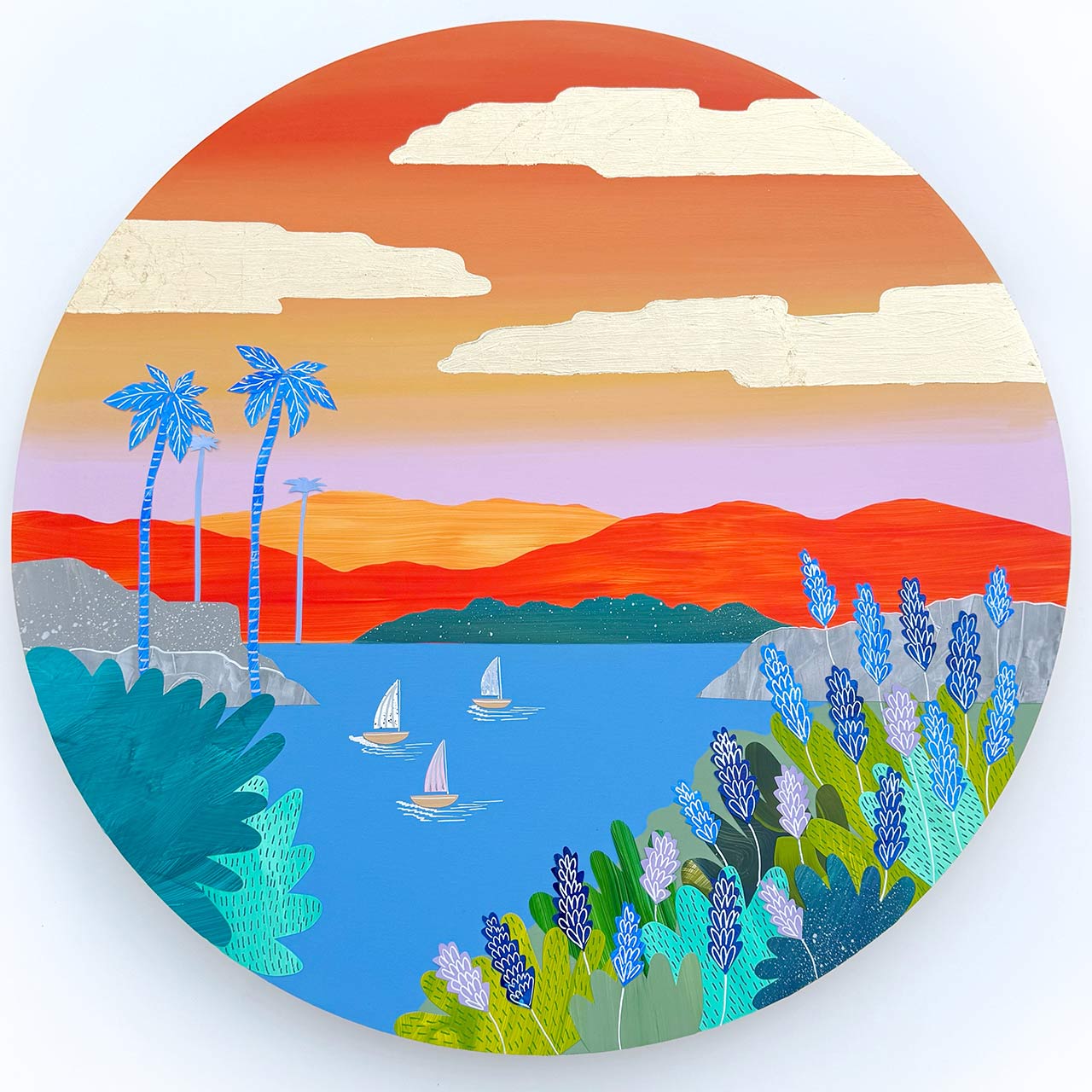 This stunning mixed media artwork captures the soulful essence of the ocean in a way that feels both modern and timeless. Crafted using collage techniques and finished with a glossy resin, the piece draws you in with its vibrant palette, tactile details, and ethereal twilight atmosphere.