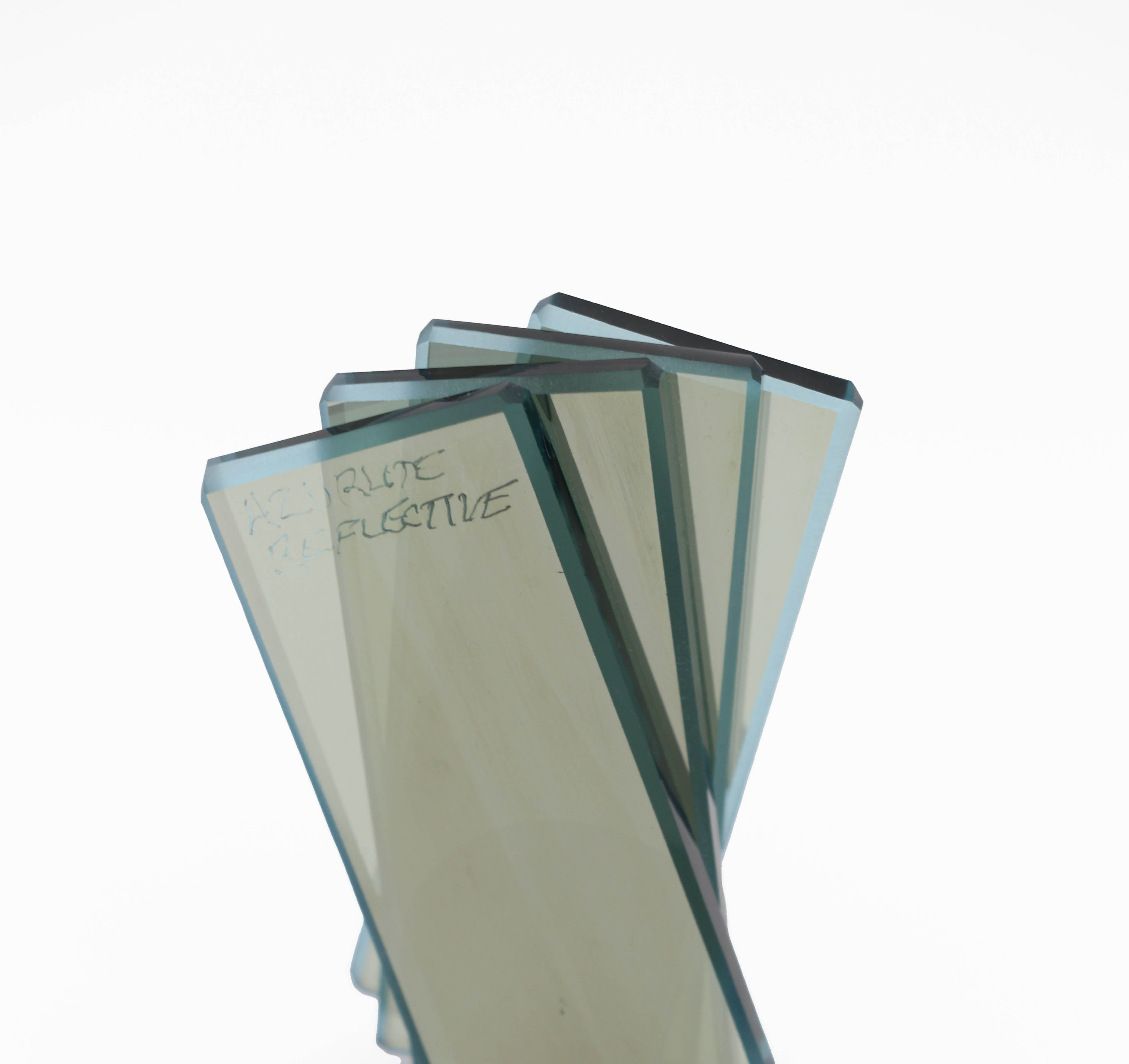 Reflective finish has a mirror-like coating that can be seen on one side of the glass.