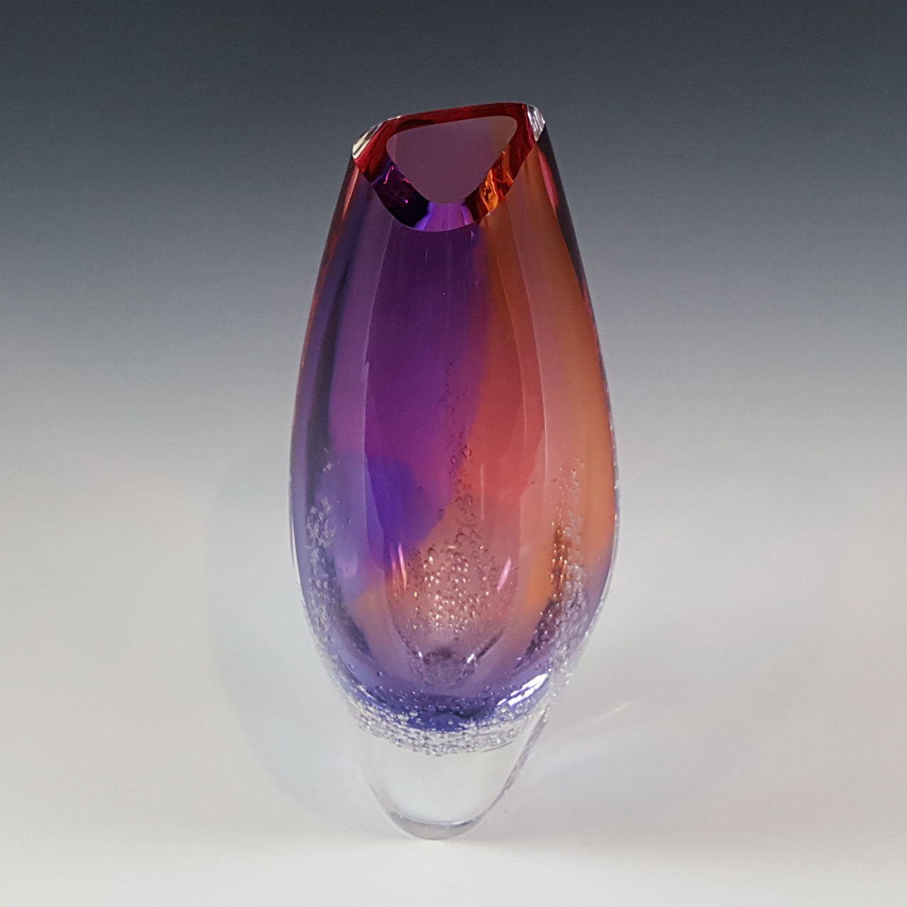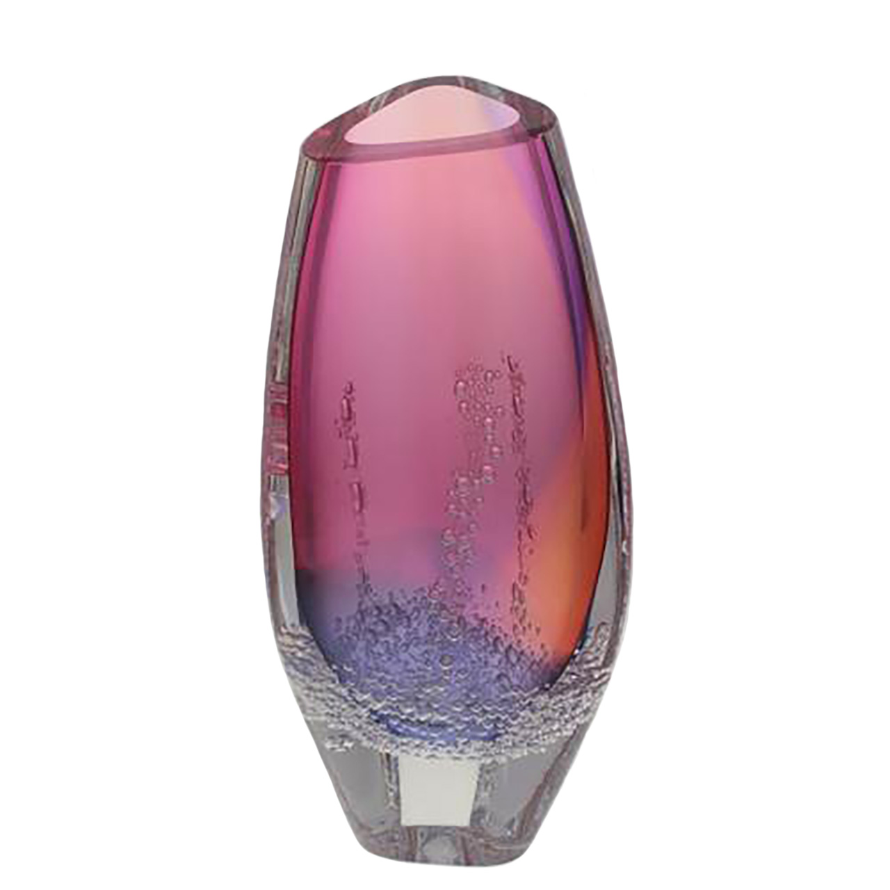 This Sea Foam Triangular Vase with Angled Ground Lip measures approximately 9" tall x 4.5" wide.